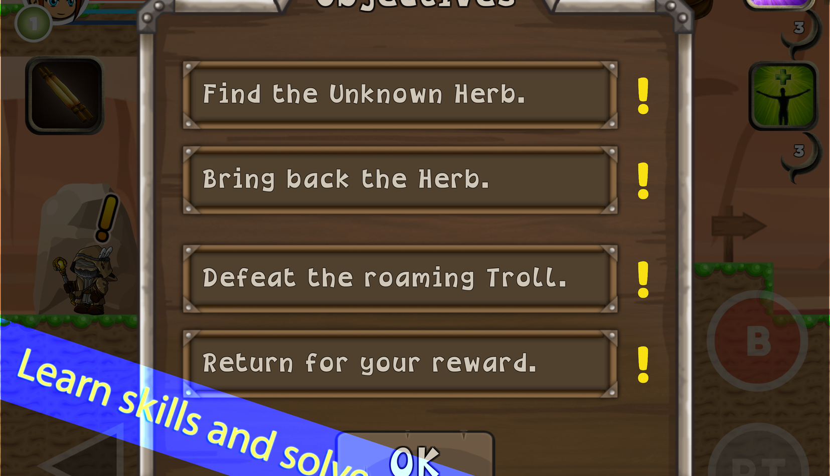 Kids learn these topics by playing an exiting game with magic spells, enemies to conquer, quests to solve and bosses to fight. The platformer thows you into the world of Magic Land in which you have to find your way back home by using your skills.